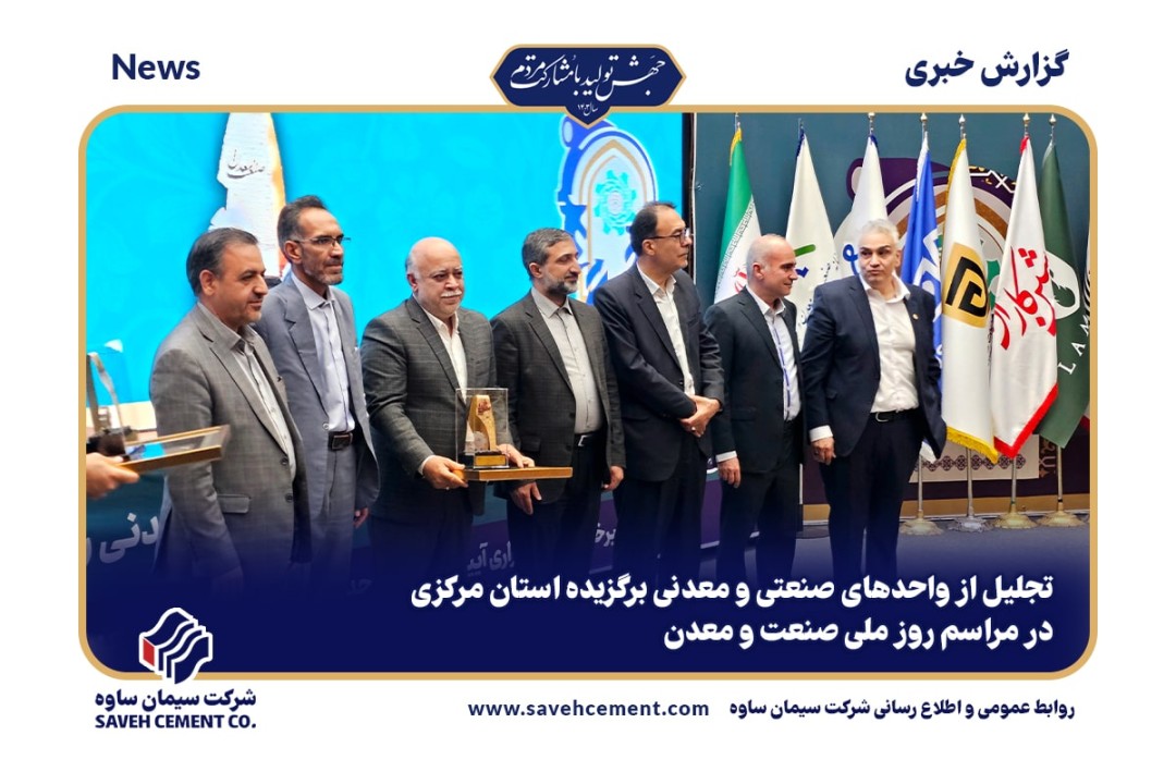 شرکت سیمان ساوه بهعنوان یکی از واحدهای شاخص استان، به دلیل اقدامات مؤثر در اجرای پروژههای انرژی پاک، ارتقای راندمان تولید، حمایت از جامعه محلی و ایفای مسئولیتهای اجتماعی مورد تجلیل ویژه قرار گرفت.